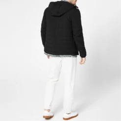 An all over quilted design jacket with a full front zip fastening and a large hood. Use of the signature Ted Baker London Flower rubberised logo badge situated in black on the bottom left of the waist, delivers instant brand recognition and appreciation for you, when on the move.