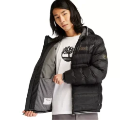Elevate your collection with this Timberland Garfield Padded Jacket. Crafted with full zip fastening and long sleeves for a secure fit, it features a hood and two hand pockets for a classic look. This jacket is designed with a signature logo and is complete with Timberland branding.