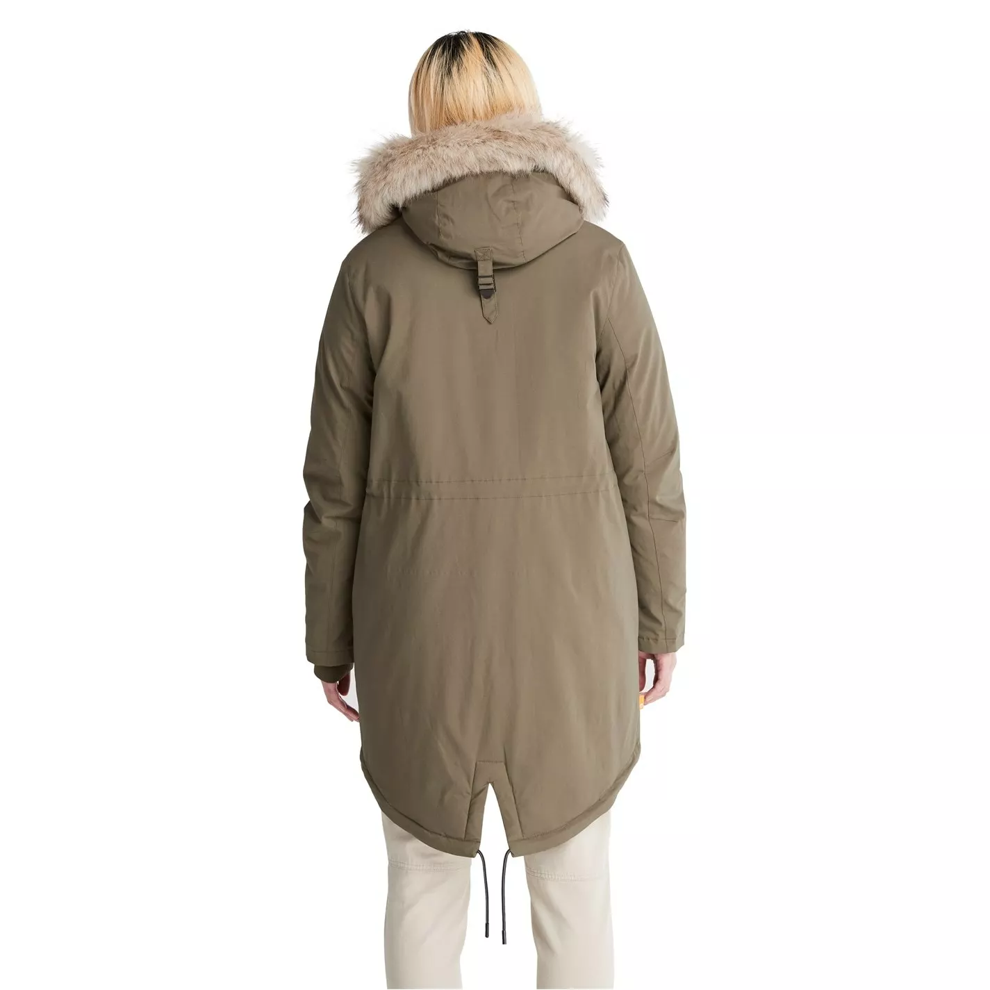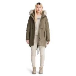 Enhance your collection with this Timberland MT Kelsey Parka Jacket. Constructed with full zip fastening, drawstring adjustment and long sleeves with comfortable ribbed trims for a secure fit, it features a faux fur trimmed hood and two hand pockets for a classic look. This jacket is a solid colouring throughout designed with a signature logo and is complete with Timberland branding.