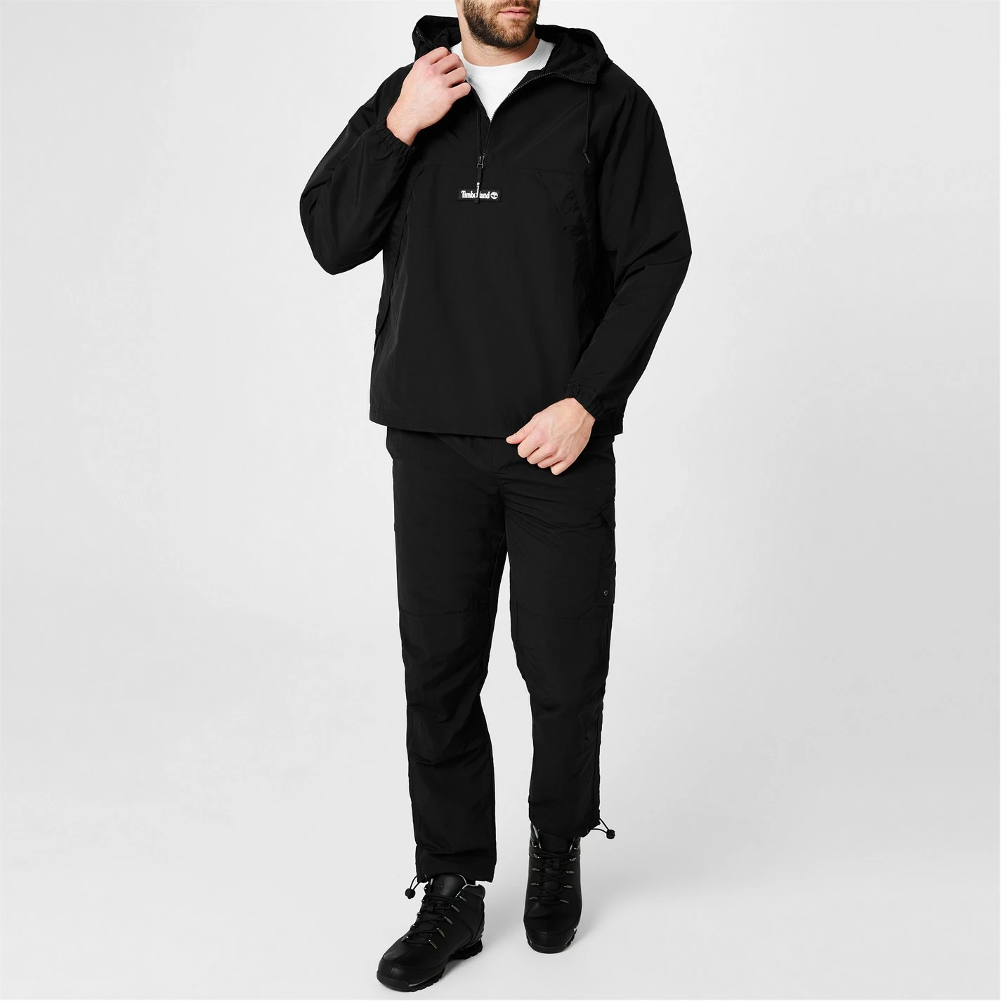 Enhance your collection with this Timberland YC Windbreaker Jacket. Constructed with half zip fastening and long sleeves for a secure fit, it features a hooded neckline with drawstring adjustment and a kangaroo pocket for a classic look. This jacket is designed with a signature logo and is complete with Timberland branding.