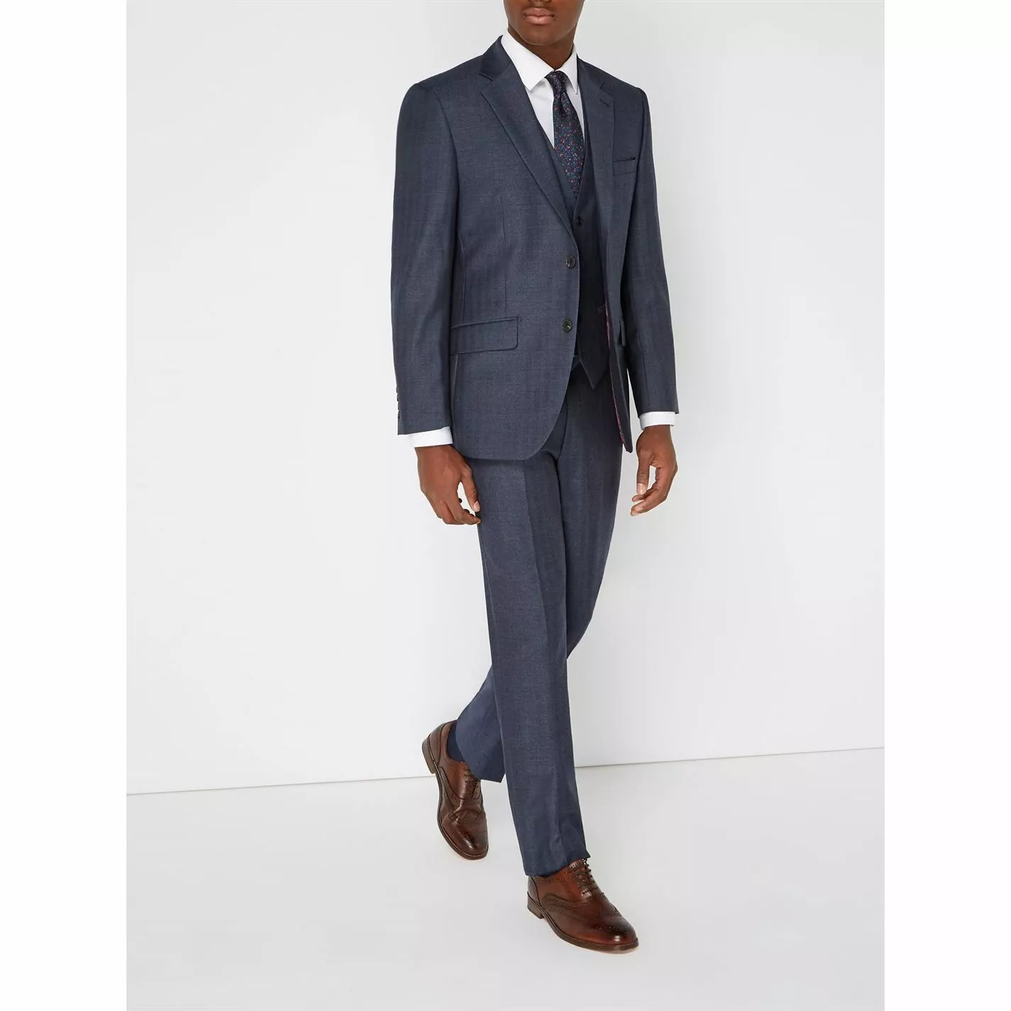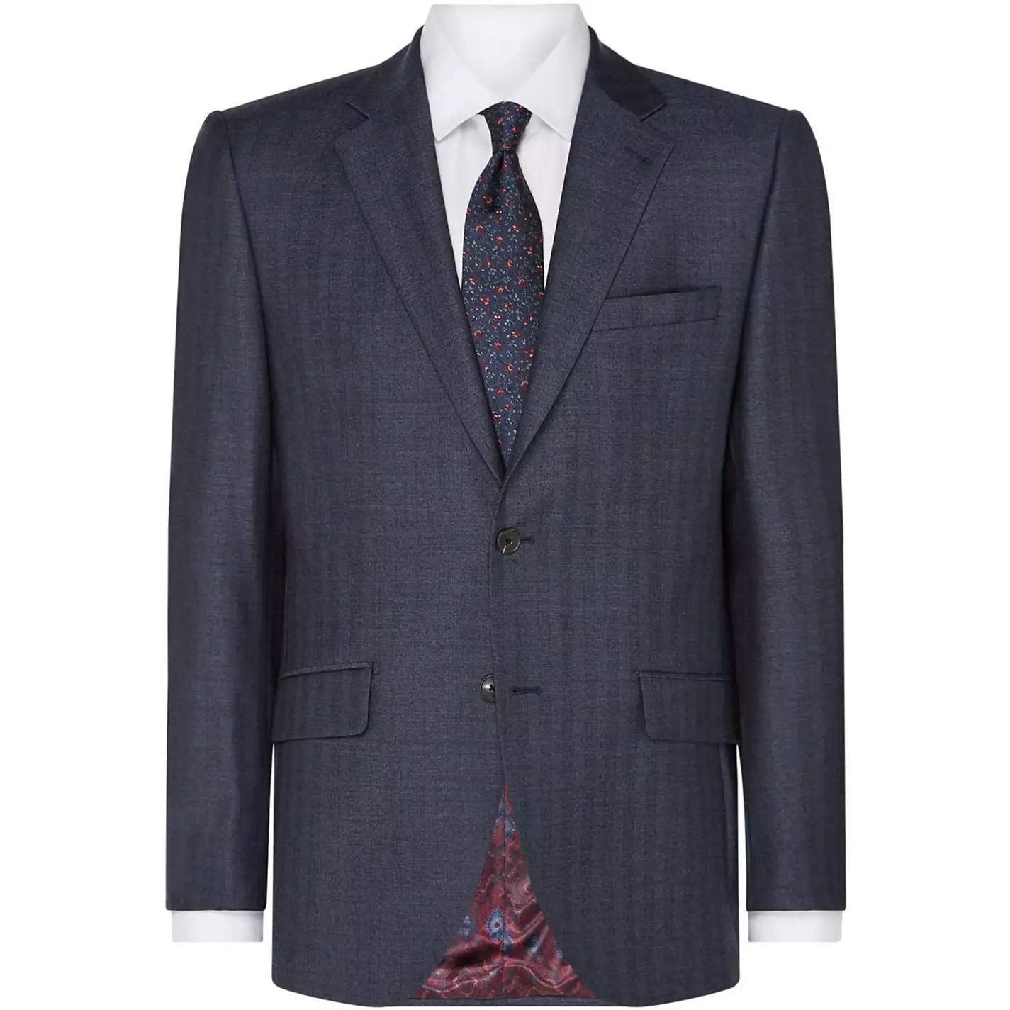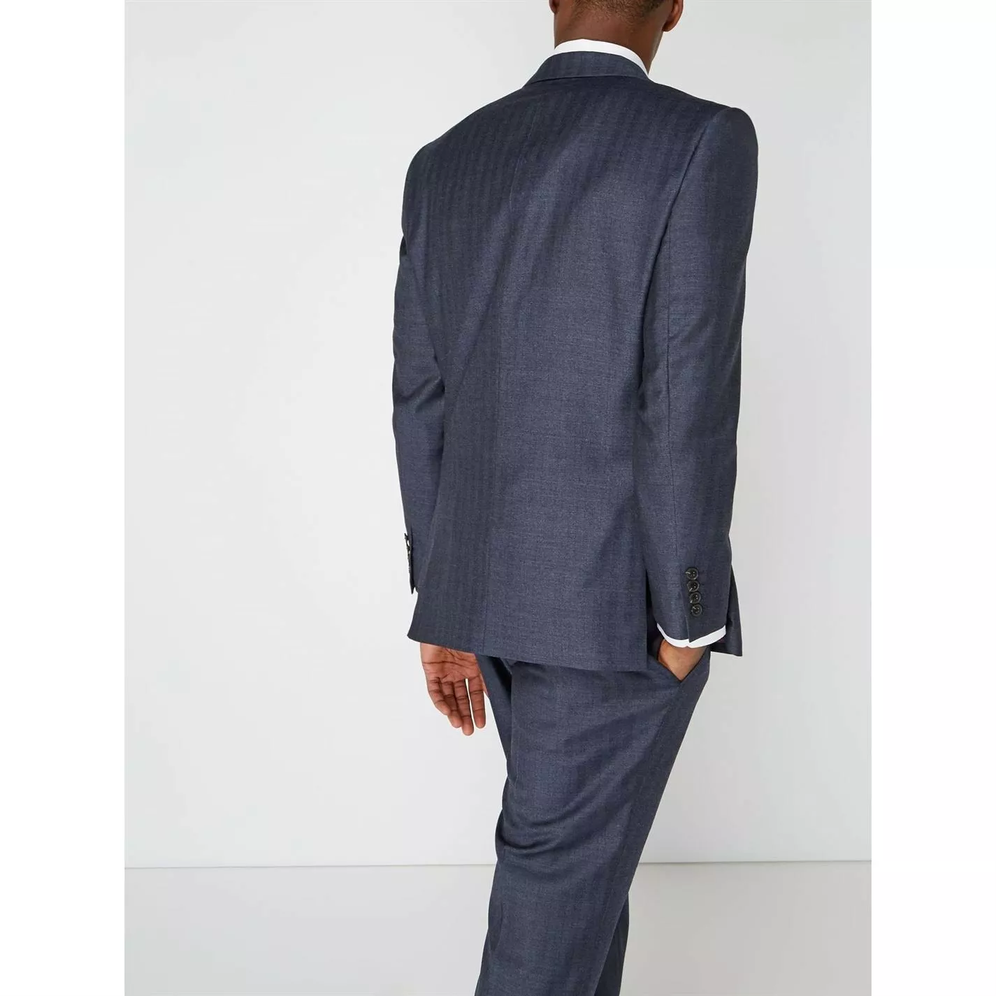 The Harston suit jacket by Turner & Sanderson is a classic solution to occasion dressing. This birdseye wool suit jacket is single-breasted and has a double vent, giving it a smartly tailored fit. A timeless addition to your formal wardrobe, this elegant navy blue suit is finished with chest and front pockets, meaning you can match your tie and pocket handkerchief to achieve a stylishly succinct look.