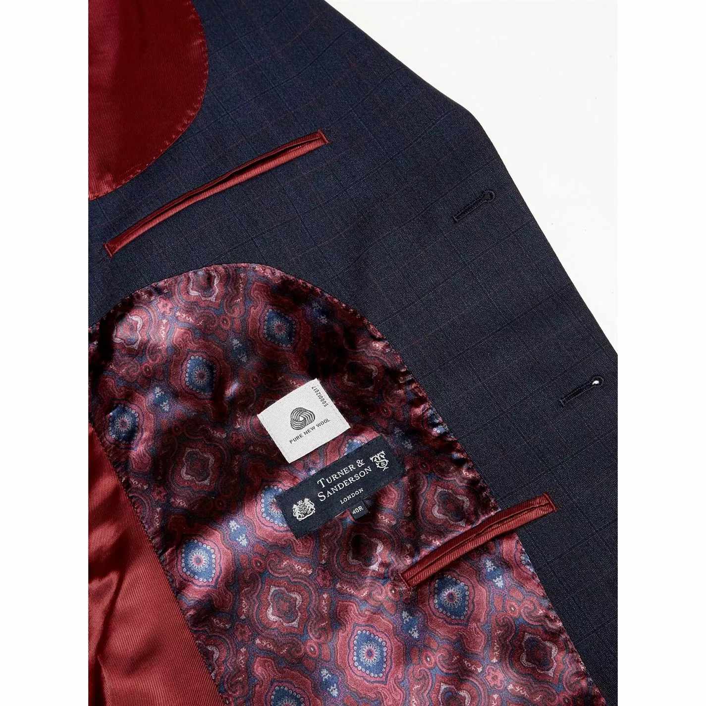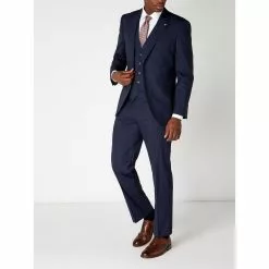 The Anderby suit jacket by Turner & Sanderson is a classic choice for your next formal event. Constructed from a luxurious pure wool, this stylish navy suit jacket is a traditionally tailored piece that complements the Anderby suit trousers and waistcoat to create a three-piece look that`s perfect for occasion dressing. This single-breasted suit has a double vent and is beautifully lined. Finished with a chest and front pockets, it is the epitome of timeless elegance.