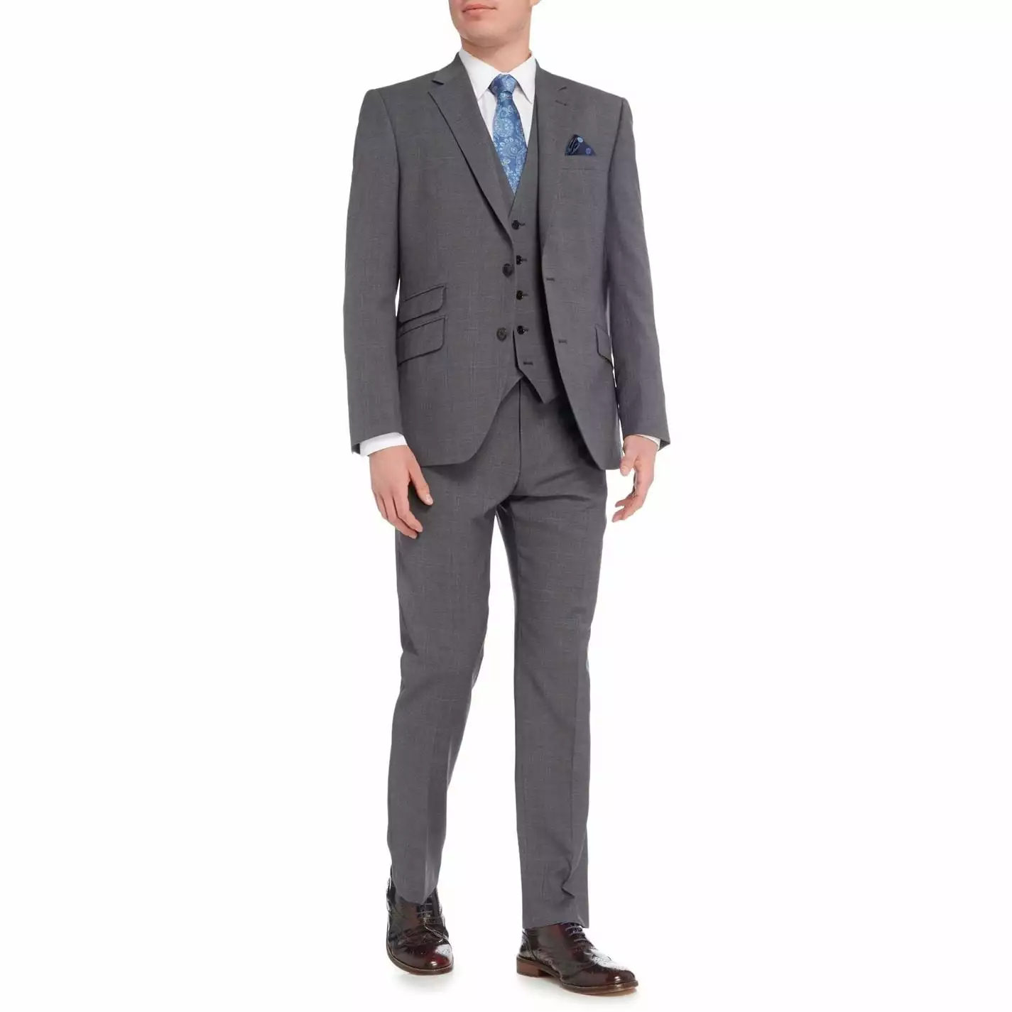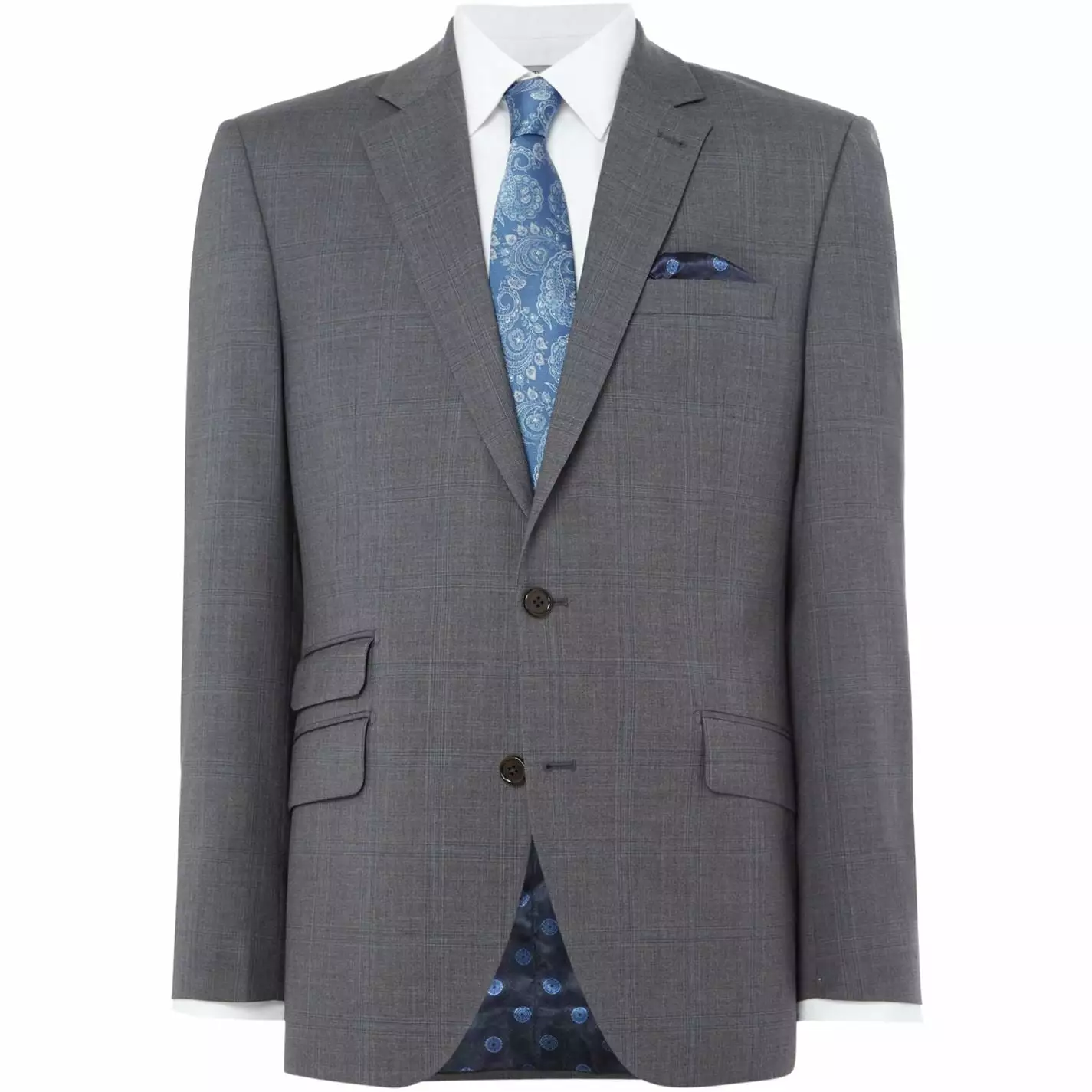 Get a modern sartorial three-piece ensemble with this Wellford suit jacket by Turner & Sanderson, designed to be worn with Wellford trousers and waistcoat. Crafted from pure wool fabric, this fully lined jacket features a subtle yet appealing check pattern, a notch lapel and four button cuffs making it ideal for the office or any formal occasion. To add those special finishing touches, the blazer coat comes with two front flap pockets, a ticket pocket, a welt breast pocket and double vents for easy movement. Complement this stylish jacket with textured shirts or accessories such as a bright patterned tie.