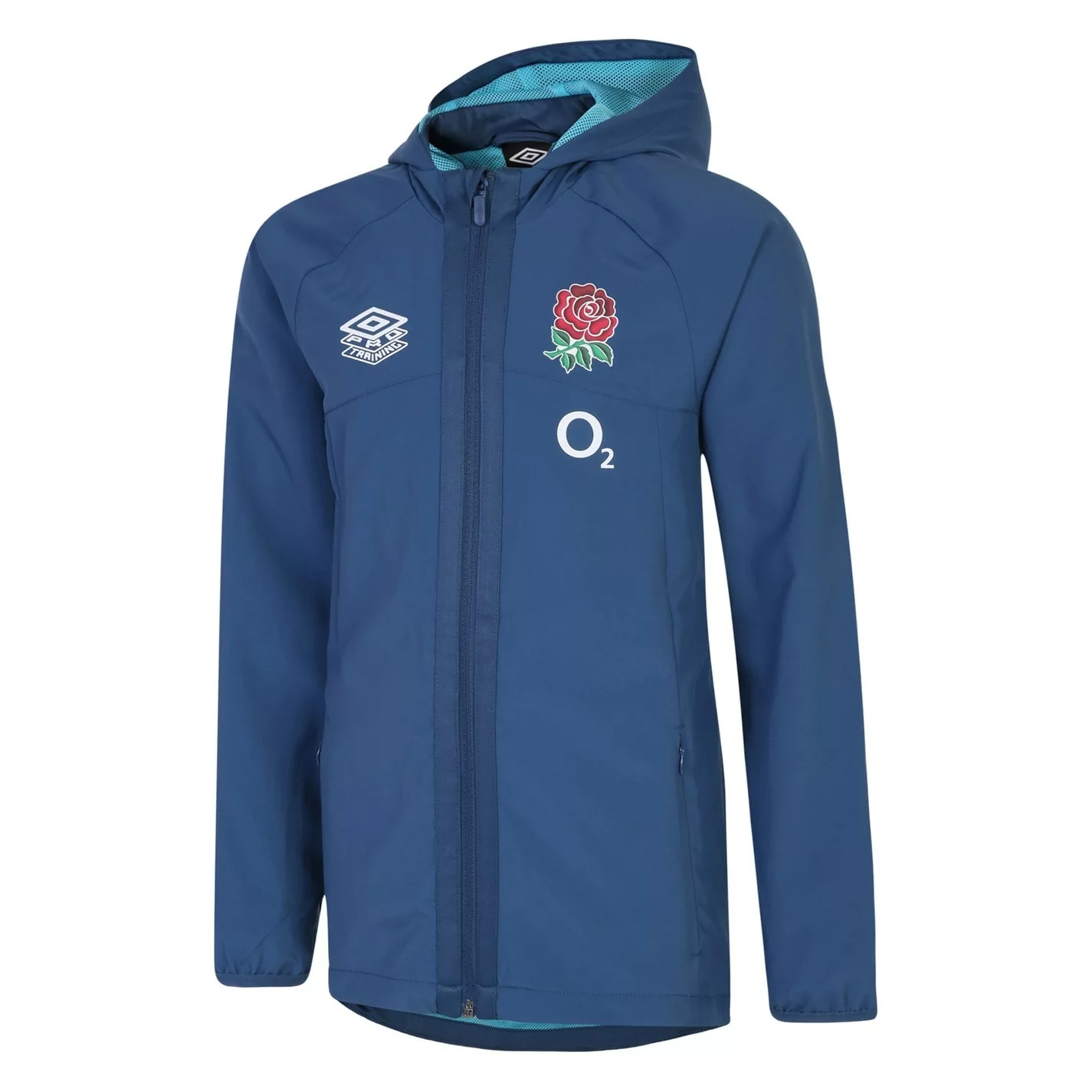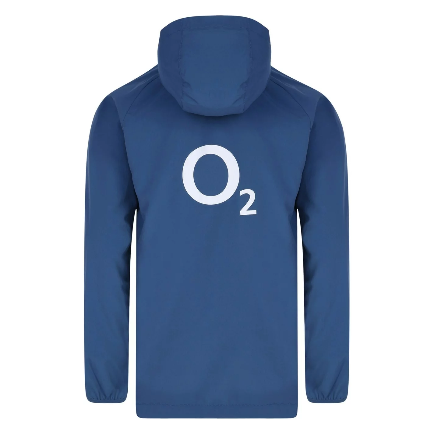 The Umbro England Rugby Shower Jacket is a must have for your little one. Made from a lightweight polyester with a central zip fastening and fixed hood to keep them protected from the rain, the two side pockets provide a practical touch. The jacket is complete with the team badge and Umbro branding to the front and a large O2 logo to the rear.