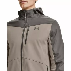 Elevate your performance with this Hooded Jacket by Under Armour, crafted from a polyester fabric that is nearly weightless with the ColdGear Infrared® fabric technology. That absorbs and retains your body heat to keep you out in the cold for longer. In addition you can tackle the elements keeping warm and dry with the wind proof construction and UA Storm technology repels water without sacrificing breathability or without the bulk that could restrict your movements. The hoodie features a durable, bonded 3-layer soft shell material has a quiet outer layer and superior stretch, full zip fastening, four-way stretch material moves better in every direction, finished with a secure zip hand and chest pockets. The look is completed by the iconic Under Armour logo embossed on the left chest for brand recognition.