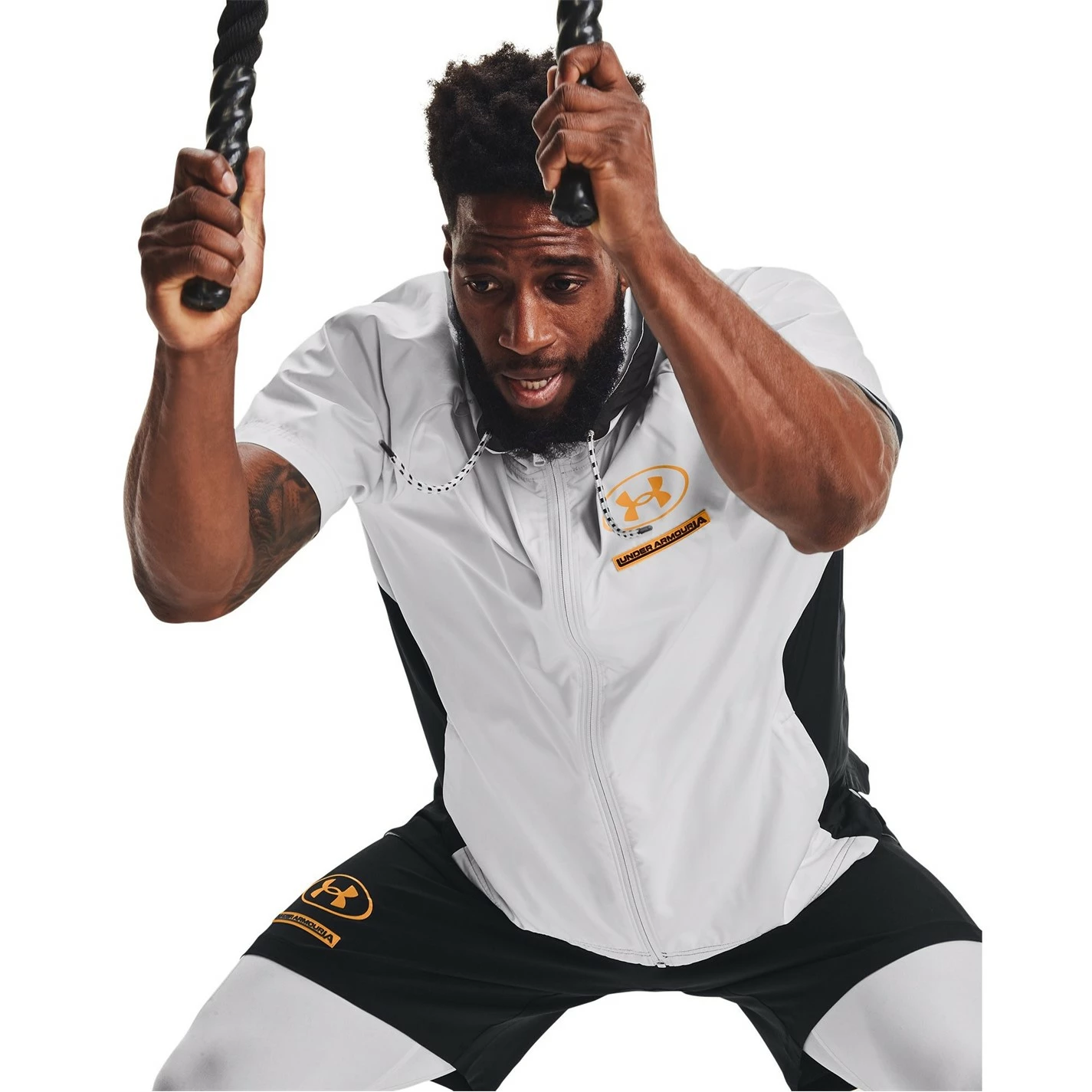 Elevate your performance with this option that is great for warm-up sets, the Evolution Woven Short Sleeve Jacket by Under Amour is crafted from a lightweight woven fabric fro all-day comfort and durability. The jacket is made from the brand’s UA Storm fabric technology that repel water without losing breathability and is packable into the back pocket when you are on the go. The jacket features full zip fastening to the front, short sleeves, drawstring’s to the hood to adjust the fit and two zip hand pockets. The look is completed by the signature logo to the front and back for instant designer appeal.