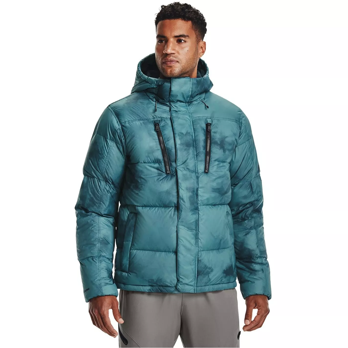 This Under Armour Printed Down Jacket is crafted with concealed full button fastening and long sleeves for a secure fit. It features a hooded neckline with drawstring adjustment plus four pockets for a classic look and is a lightweight construction. This jacket is an all over print design with a signature logo and is complete with Under Armour branding.