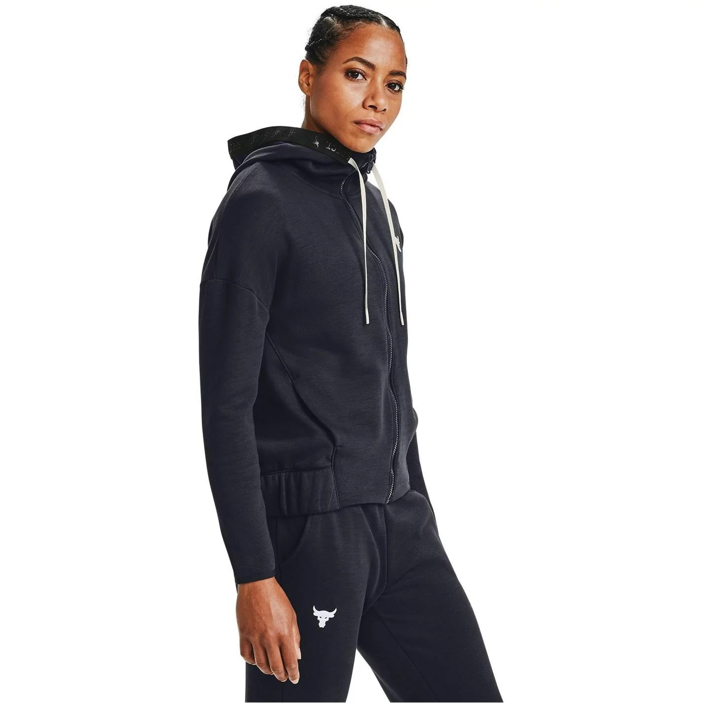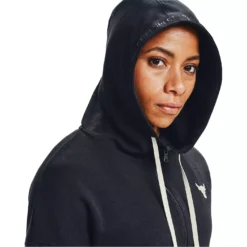 This Under Armour Project Rock Zip Jacket is crafted with full zip fastening and long sleeves for a secure fit. It features a hooded neckline with drawstring adjustment and two hand pockets for a classic look. This jacket is designed with a signature logo and is complete with Under Armour branding.