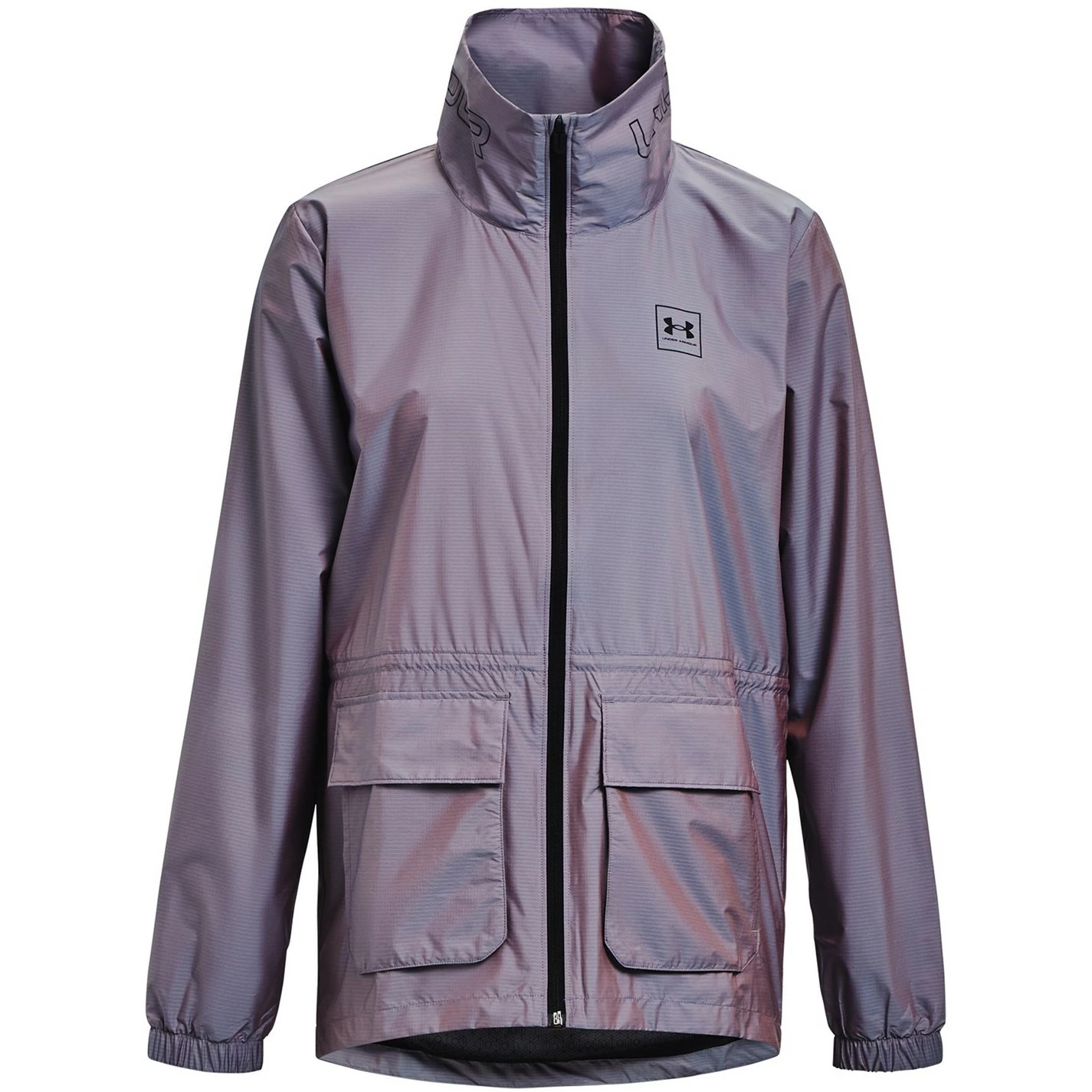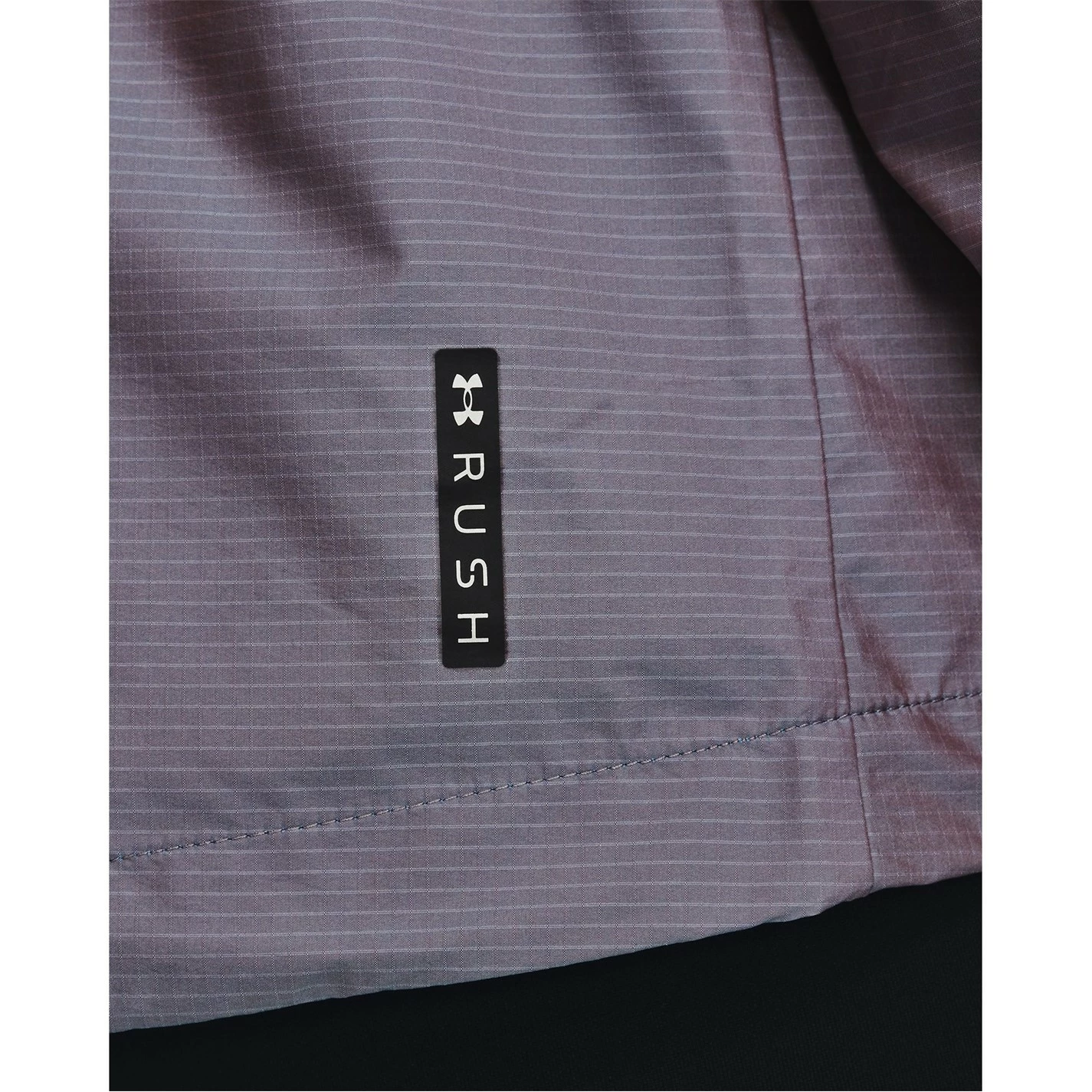 This Under Armour Rush Iridescent Jacket is crafted with full zip fastening and long sleeves with comfortable elasticated hems for a secure fit. It features two hand pockets for a classic look with small possession storage and is a lightweight construction. This jacket is a solid colouring throughout designed with a signature logo and is complete with Under Armour branding.