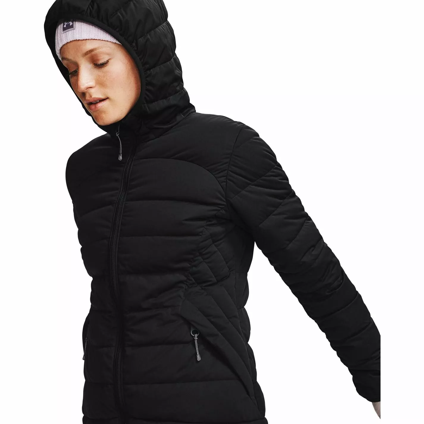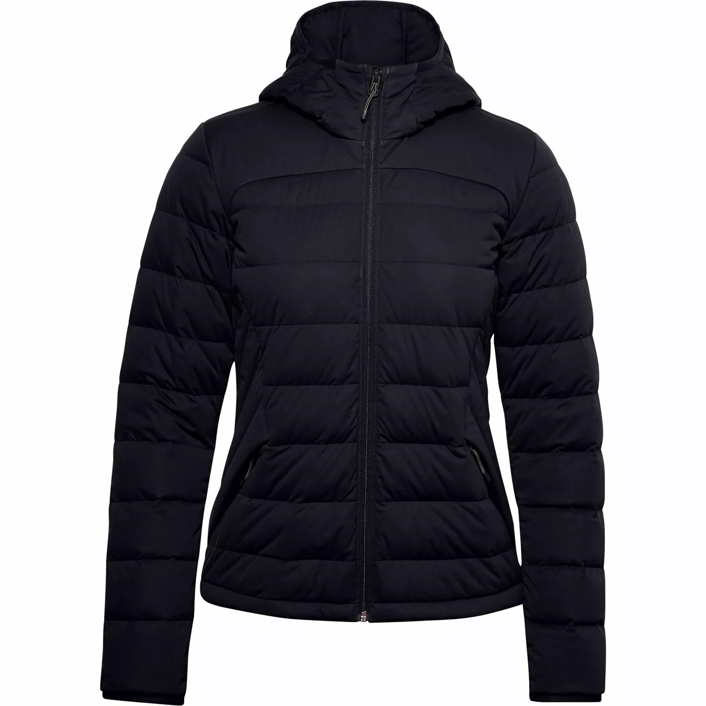 This Under Armour Stretch Down Jacket is crafted with full zip fastening and long sleeves with ribbed cuffs for comfort. It features a hooded neckline and two zipped hand pockets for a classic look. This jacket is designed with a signature logo and is complete with Under Armour branding.