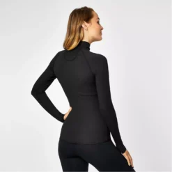 Take your workout to the next level with the USA Pro half zip funnel neck jacket. The slimline silhouette accentuates your form and features black seamed detailing that is figure-flattering and stylish. The breathable fabric is comfortable to wear while sweat wicking technology enhances your workout routine to help keep skin dry while you’re working up a sweat.