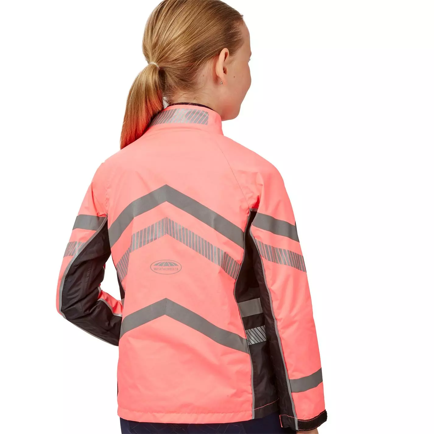The WeatherBeeta Reflective Lightweight Waterproof Jacket is a waterproof and breathable all weather, lightweight multi functional jacket, fully lined with polyester mesh fabric. Featuring a centre front 2 way zip, reflective branded puller, storm flap, hand zip pockets and inner collar with fleece lining for additional warmth and comfort. The extended back hem with snaps is ideal for riding with a elastic drawstring cord at hem for flexi fit. The raglan cut sleeves offer touch tape tab closures at cuffs for a snug fit with stylish reflective tape design on front, back & sleeves providing easy visibility. Comes in 2 hi vis colours of yellow & pink. EN1150 Certified. Cold machine wash with dark colours, hang to dry.