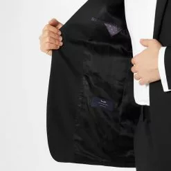 Perfect for formal events with the Jacquard Tux Suit Jacket is crafted in a timeless form fitting silhouette, Without Prejudice is known for it’s fine tailoring. In a sleek wool blend with a tonal one-button fastening, notch lapel with contrast fabric trim and soft lining, it features additional button cuff fastenings for an all round luxury look. The look is complete with subtle branding, this blazer is perfect for special occasions.