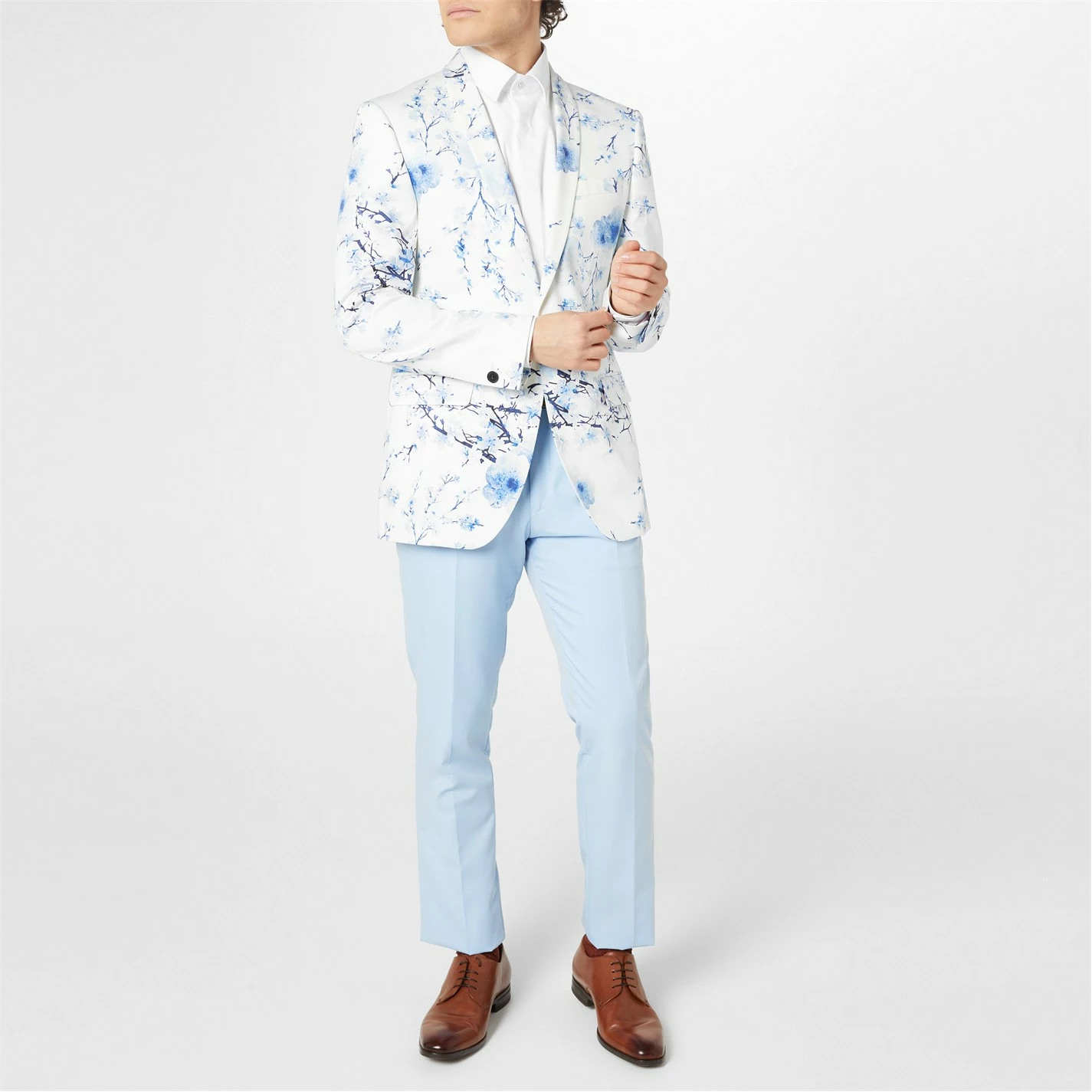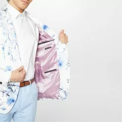 In a unique print perfect for the Spring/ Summer season the Print Floral Suit Jacket from renowned tailoring brand Without Prejudice London is crafted in a timeless form fitting silhouette, making this your go to suit jacket for special occasions. In a sleek wool viscose blend with a tonal one-button fastening, notch lapel and soft lining, it features additional button cuff fastenings for an all round luxury look. The look is complete with subtle branding to complete the look, this blazer is perfect for a summer wedding to pair with light trousers for versatile styling options.
